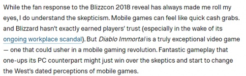 “暗黑不朽是一款极其优秀的电子游戏,它甚至可能会引发一场手游的革命。”