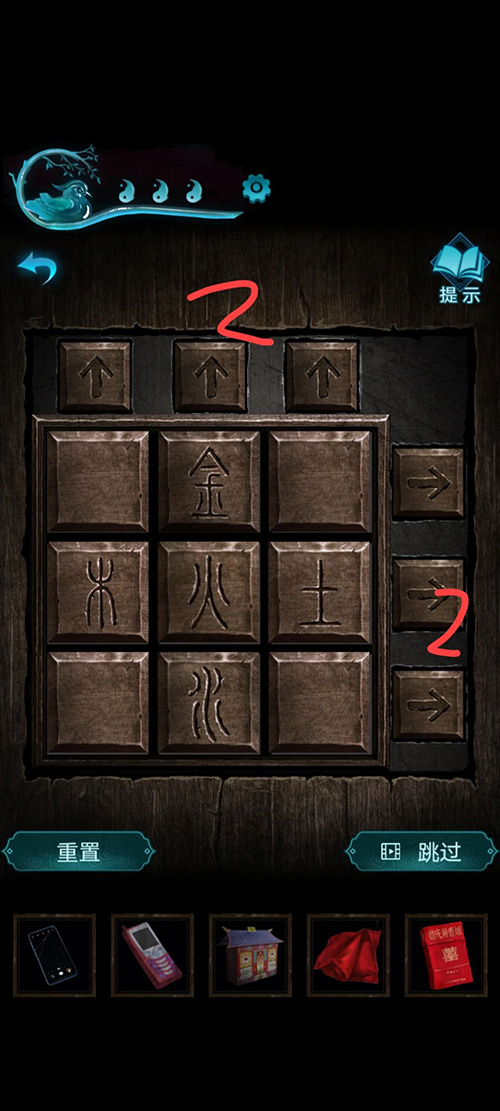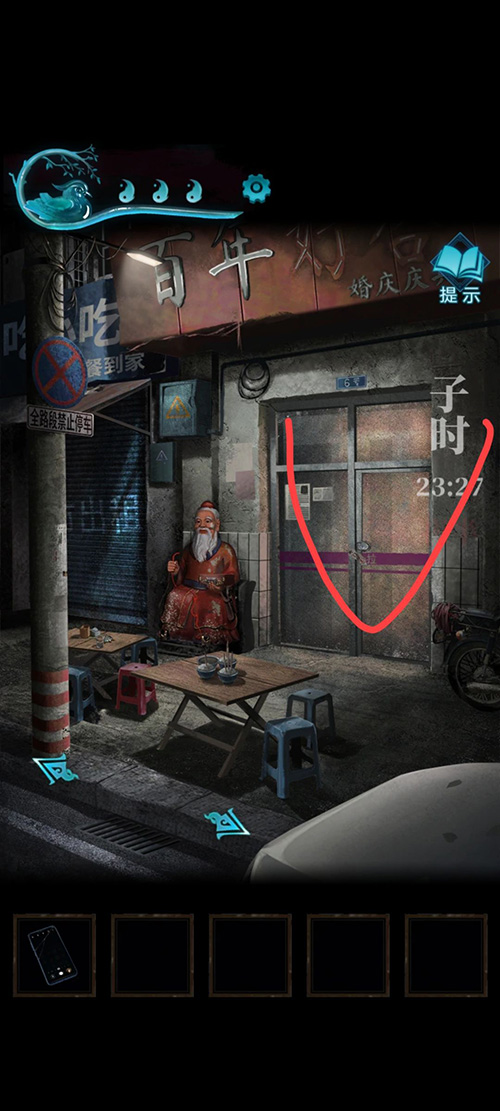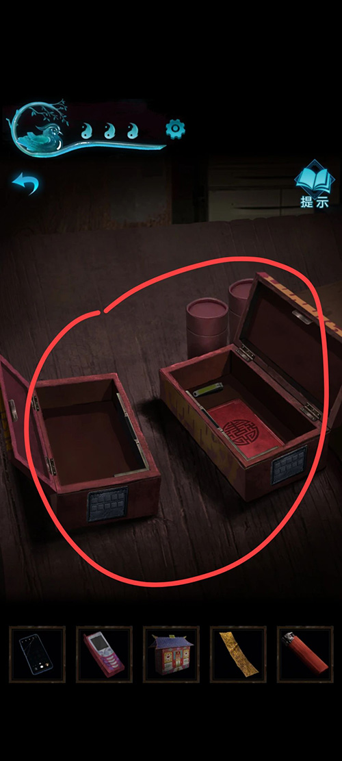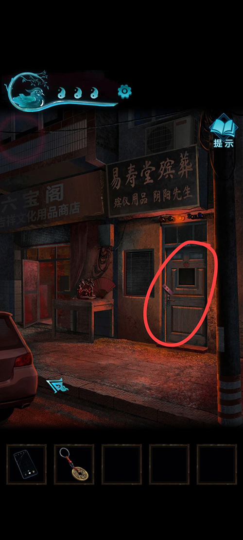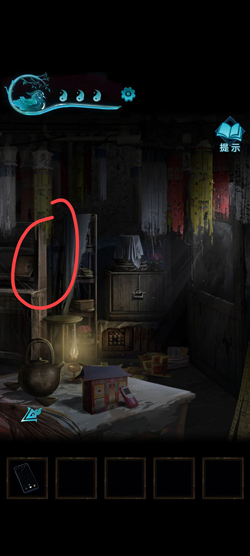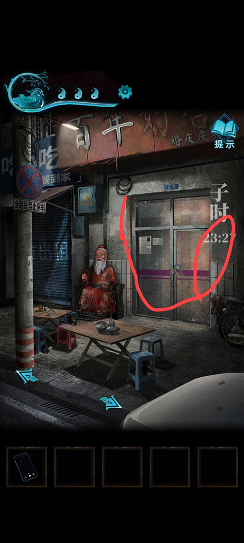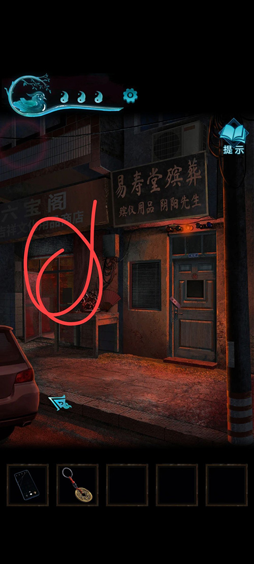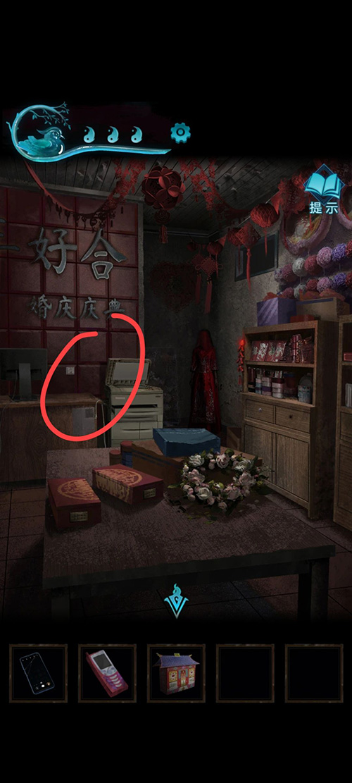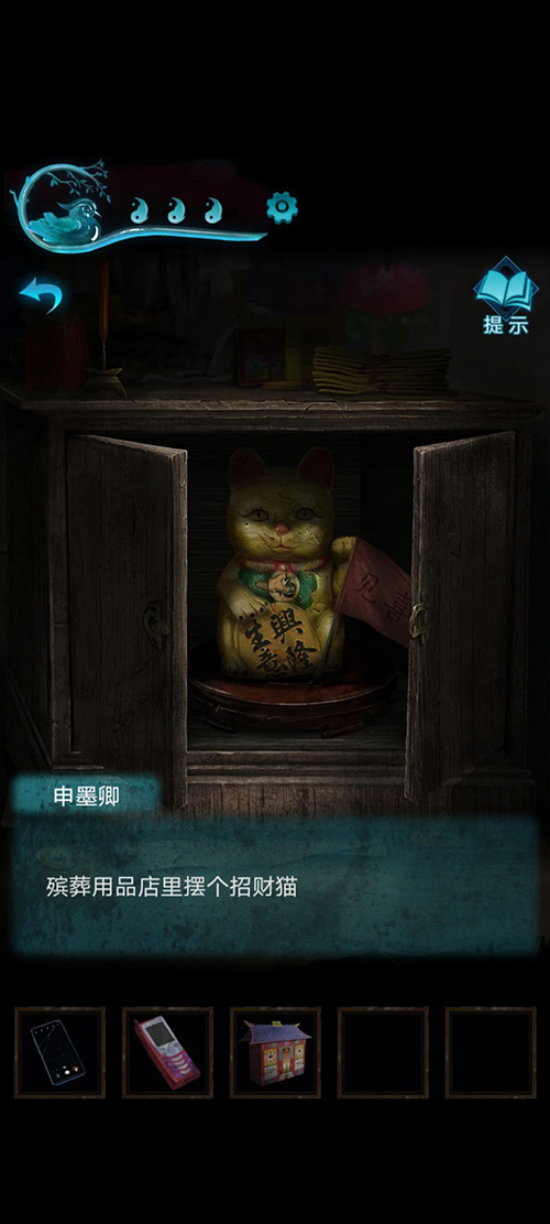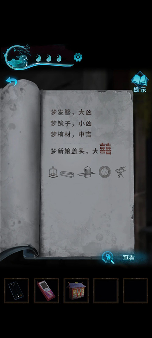 4、密码是“丧喜贺丧迎”,是桌子上的碗筷子的密码,然后点击空碗就会出现一个铜钱;