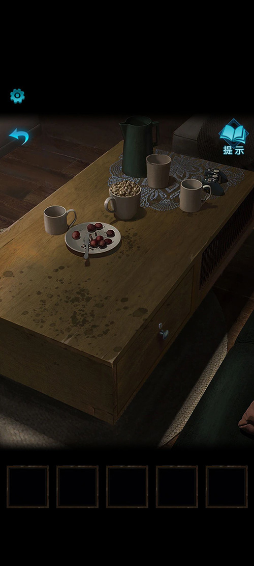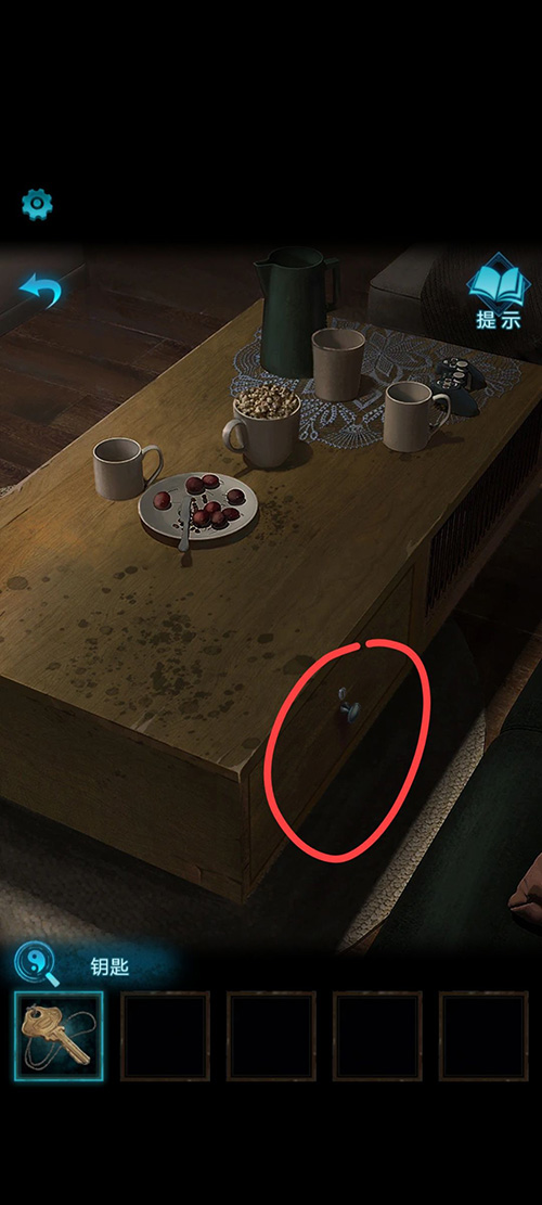2、点击桌子的头题,闹鬼,日历被吹走,然后点击日历获得钥匙,使用钥匙打开抽屉;