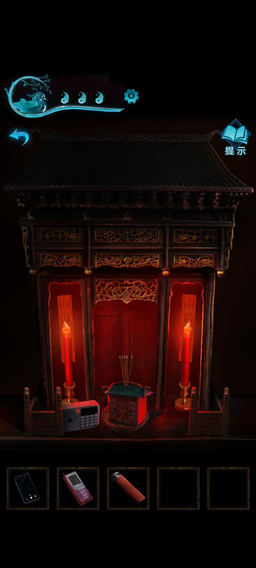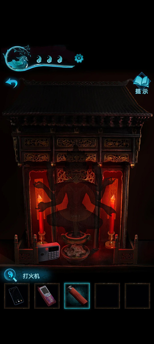 36、点击供台,将两个符文贴上去,将房子放在盘子上,使用打火机点燃,本章结束。