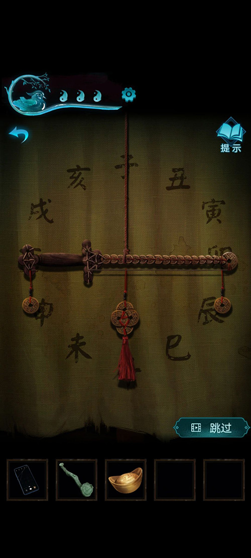 10、开启小游戏,拉动铜钱,让铜剑指向辰;