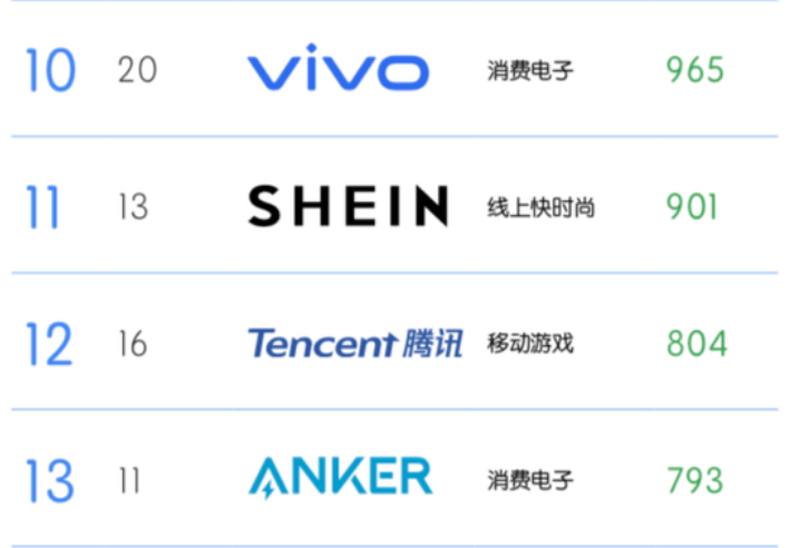 最后分享一个有意思的事情,和阿里同为行业巨无霸的腾讯,这次的排名却意外的低,仅排第十二名。。不过考虑到这是全球化的排名,腾讯确实没什么优势,这个排名倒也无可厚非。