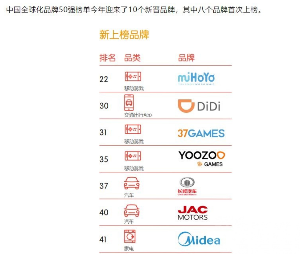 近日,凯度携手Google发布了2021年BrandZ中国全球化品牌50强榜单。其中米哈游凭借其现象级游戏原神首次登上中国全球化品牌前50强,并以第22名的成绩排在中兴后面。