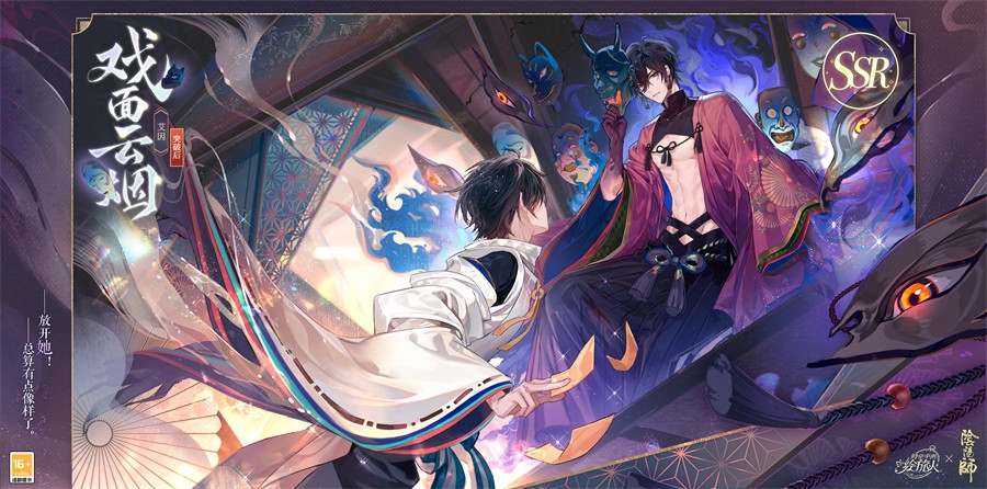 SSR画灵【戏面云烟】属特殊联动画灵,具备获取时台词特别展示;突破后具备横幅卡面、【流光】效果,可设为登录界面。