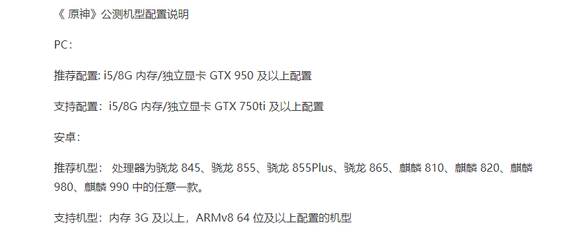 移动端来王者来对比,小米5玩王者几乎没有什么延迟卡顿问题,顶多是画质不太好;而用小米8玩《原神》还会经常卡顿;PC端的话,最低也要2060s显卡和750ti,这要求着实对部分学生党不太友好。