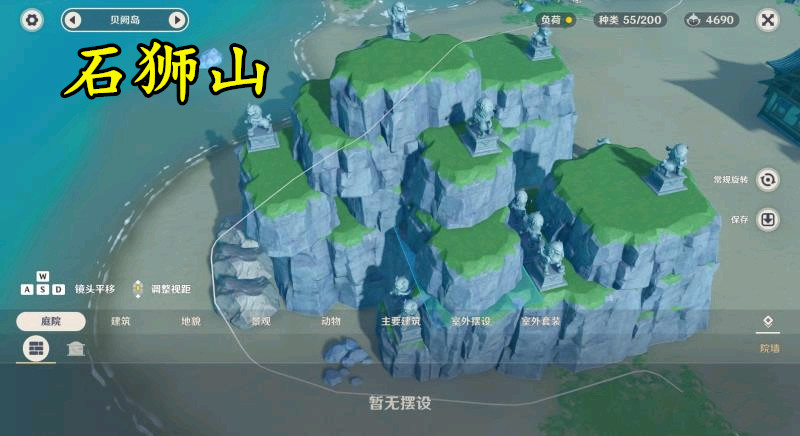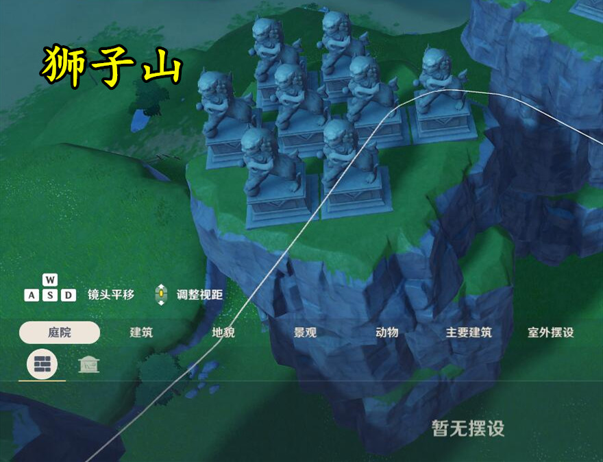 狮子山1号:这位原神玩家不知道如何处理自己庄园里的石狮子,于是全都放在了外面的石块上。这些石块堆砌在一起看起来就像一座小山,而每一个山头都有一个石狮子坐镇,所以起名叫《狮子山》。