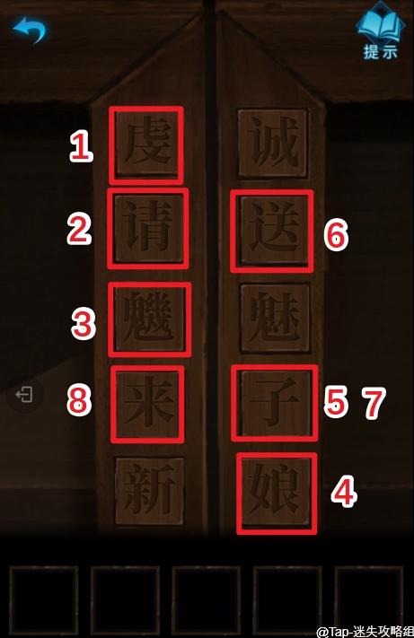 17、点击右边的柜子,依次点击:虔请魕娘子送子来,得到【钥匙】。