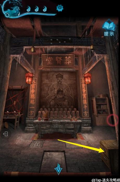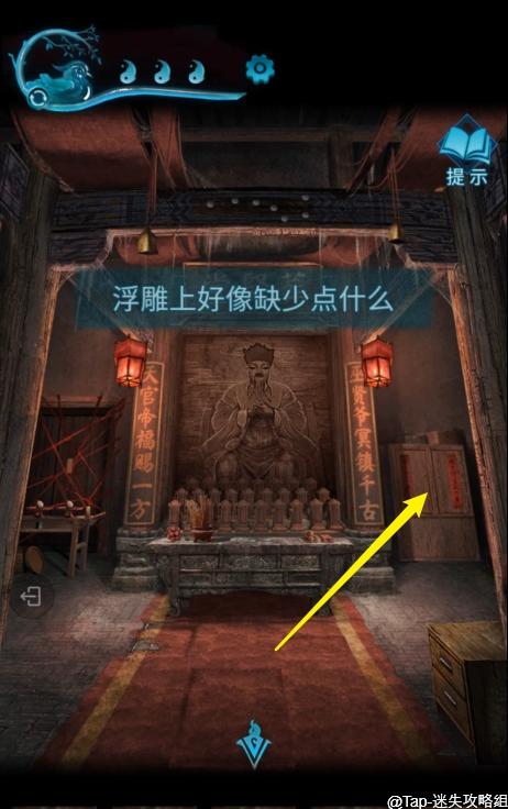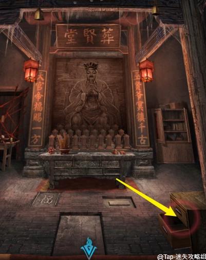 25、回到宗祠,点击雕像左边的祭坛,将【阳喜字】放入凹槽。