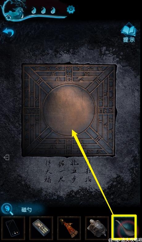 16、回到野外小道,点击发现【石龟】的石盘,将【磁勺】放上去。