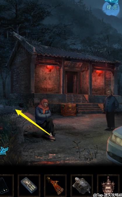 24、回到宗祠门口,点击左边的河,将【石龟】和【佛头】都扔入河中,然后返回宗祠。