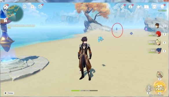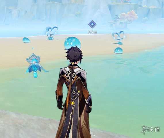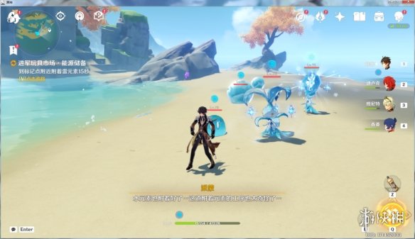 第二站瑶光滩,吸附水元素,这里注意从传送点到任务点不要去招惹雷萤术士,不然冰冻感电超导也不是好玩的。