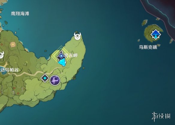第三站,稻妻九条阵屋左边传送点出发飞到对面小岛。