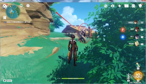 跟着任务提示第一站蒙德誓言岬,跟着火史莱姆绕圈圈就行,有盾带盾。