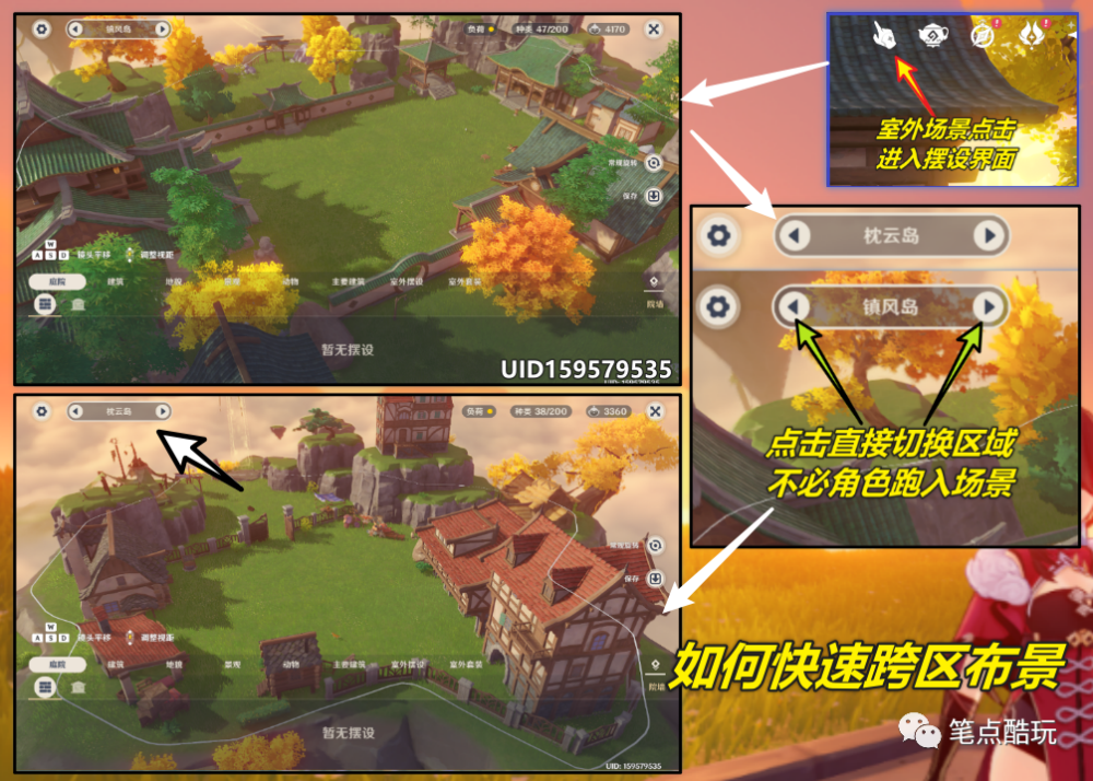 有玩家表示,解锁室外二区域后,有了负荷的“倾泻地”,它想把负荷高的摆设都转移到第二区域,却发现两块地往返只能靠脚力(不同洞天形态可以借助地势飞翔或游泳),造成摆设不方便。问我有没有传送技巧?