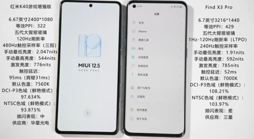 毕竟相比K40升级了电池、快充、闪存和边框,如果屏幕比K40标准版还好,那K40真不用卖了。而且这手机的定位是游戏用户,色域差点其实也不碍事(提升的都是刚需、缩水的则是不那么重要的)。