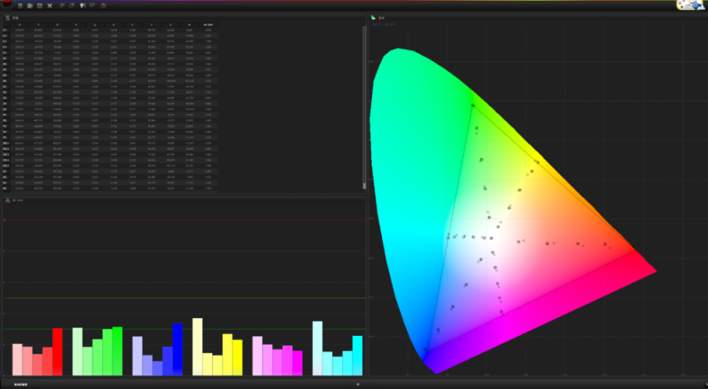 但设置后,整体ΔE基本都在3以下,色彩的还原度还是比较不错的。