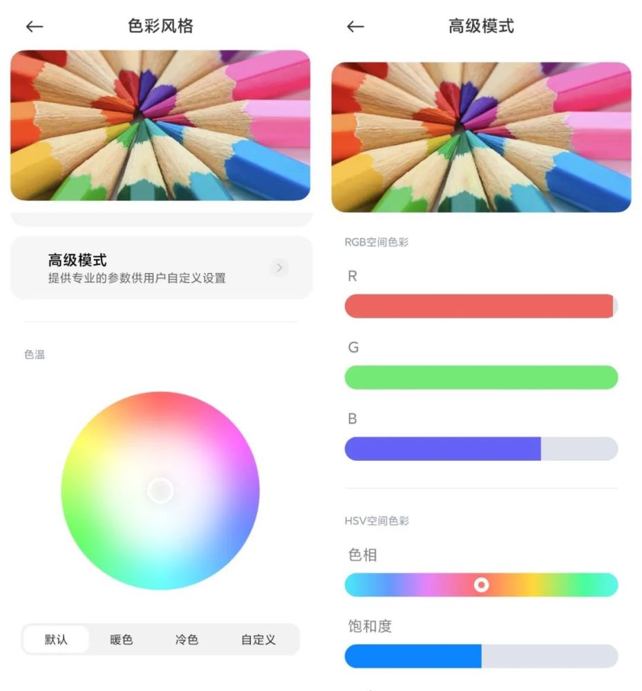 很多人可能对K40游戏版的屏幕没什么概念,这次详细的说说。首先是基础设置,K40游戏版多了个高级设置,可以手动设置红绿蓝像素的多少,和小米11U一样(但是也只能改变色彩显示的准确度,不能改变色域和灰阶这些硬性参数)。