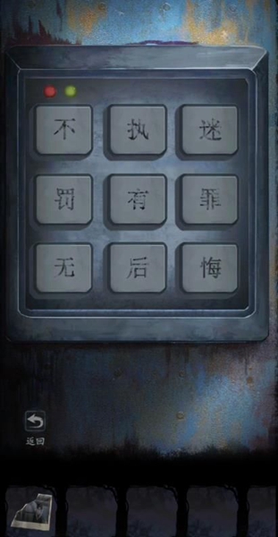 22、按照墙上的数字的顺序,并对应照片的文字,得出密码【罪不执有悔迷】。