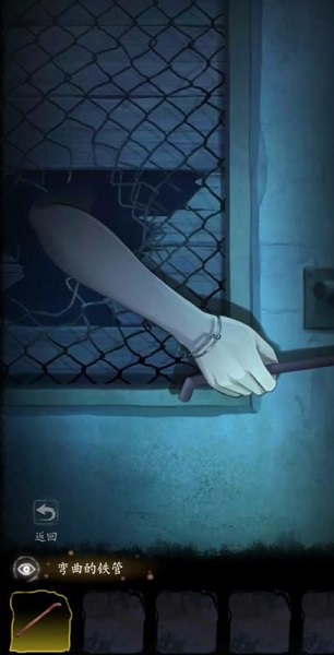 8、下面玩家需要尝试利用之前拿到的铁管将门从外面打开。