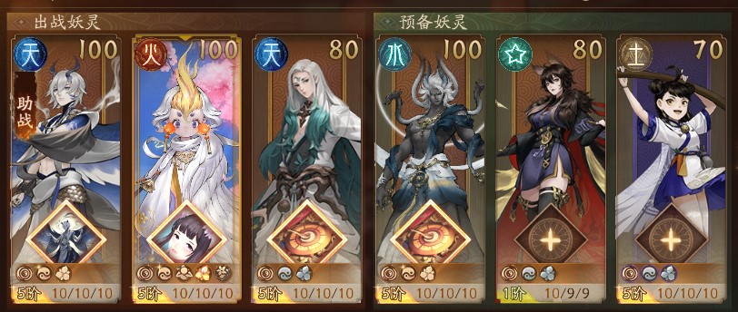 阵容一为白无常+寅虎+回气辅助,主要打法为白无常先出阵扣血,再出阵寅虎,然后为寅虎集气,使它不断出阵,而白无常等血转盾BUFF结束后再出阵,适用于BOSS血量不太高的副本。