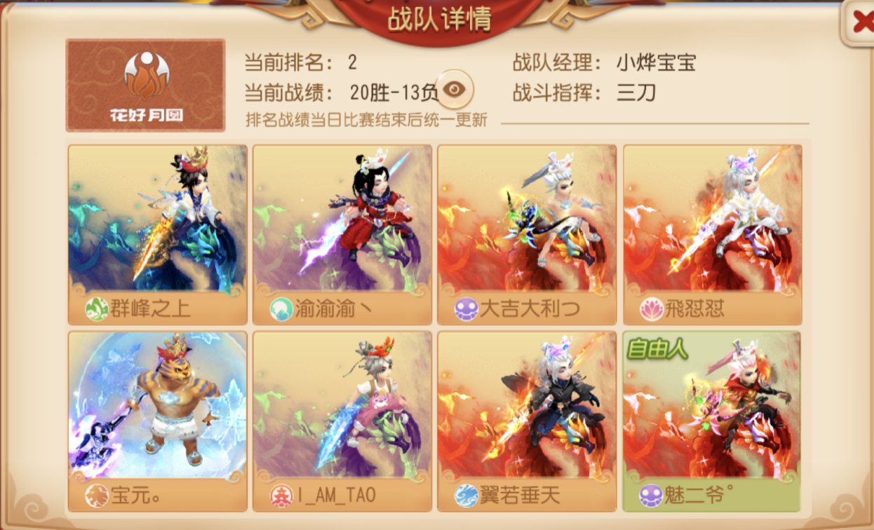 其中,花好月圆以20胜、13败,积20分位列排行榜第二,我们立刻就来探秘一下他们的制胜之道。
