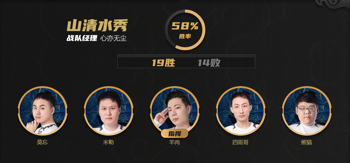 今天就让我们走近其中一支来自渠道服的王者之师——山清水秀,去看看本赛季的他们状态如何吧!