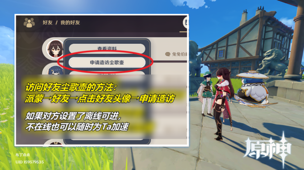 【点点详解】首先你要有一些积极玩尘歌壶的好友,然后将自己的尘歌壶设定为“离线可进”,这时无论你在线与否,好友都可以随时访问。让好友都开启“离线可进”,随时互访,日常加速无忧。