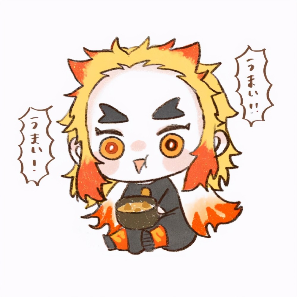 首先登场的自然是我个人最为喜欢的大哥炎柱炼狱杏寿郎,大哥用生命贯彻了自己的信念,虽然登场时间并不久,但是却给我个人留下了极为深刻的印象。怎么也是一口气吃了11盒牛锅便当的男人,所以在变可爱之后也要疯狂地吃吃吃!