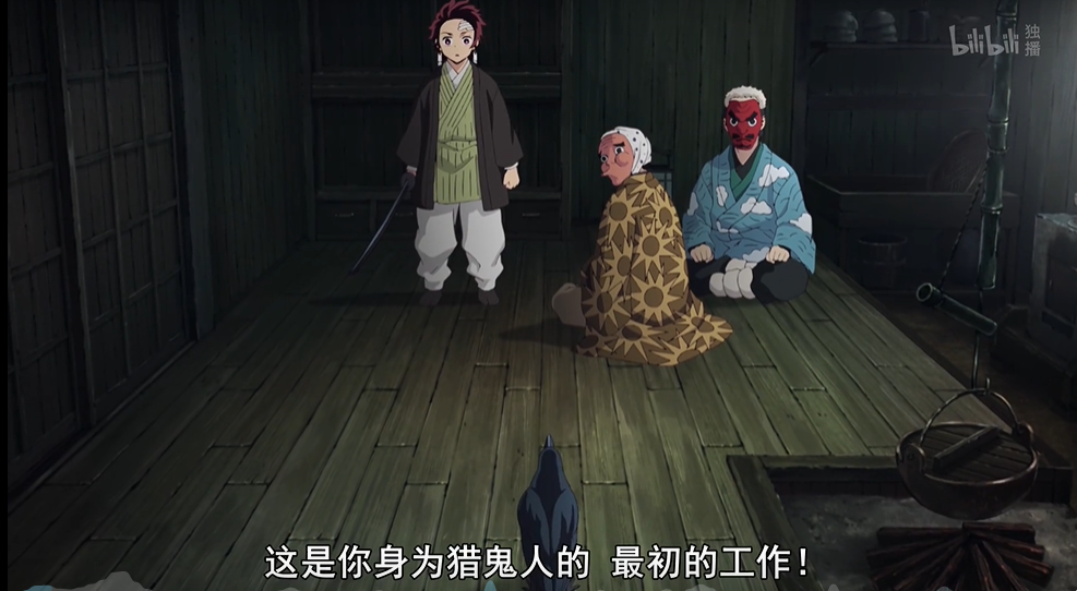 剑士告诉碳治郎,把他家人杀掉,把妹妹变成怪物的是食人鬼。