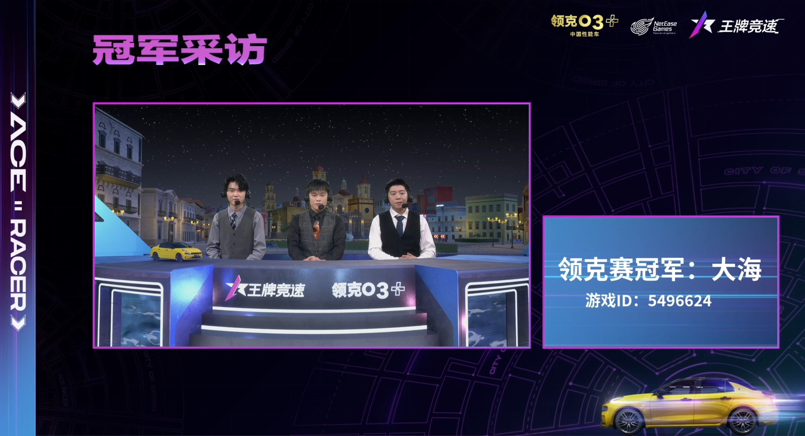 随着6月19日《王牌竞速》领克x车神杯S8领克赛决赛和团队赛决赛结束,《王牌竞速》车神杯S8圆满落下帷幕。在本届赛事上,S7冠军选手大海再创佳绩,先后拿下个人赛、领克赛冠军,并带领影队拿下团队赛冠军,战绩斐然,铸造三冠传奇!最终的领克03实车大奖以及宁波国际赛道驾控培训课程也由大海获得,领克赛赛后解说现场连线了冠军选手大海,让我们一起来分享大海的赛后心情吧!