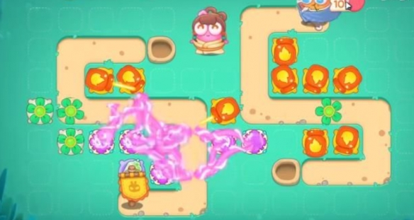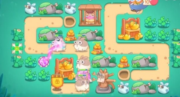 5、有钱就在地图上种炮塔,直到BOSS血量空了我们就赢了,注意有泡泡就要点掉哦。
