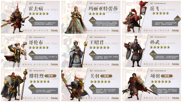 可以看到,新增了很多华夏英雄,主要以战魂关羽、战魂项羽、霍去病和岳飞这些英雄最具有特色,战魂关羽一改前面的火烧,爆发输出,在s3赛季以准备技能为主的玩法,出现在大家的面前,战魂项羽也得到了很大的加强,只需要队友对敌方施加一级控制,就可以吸取敌军的属性,战魂腓特烈发动自身技能后在自身血量的基础下,能提高下一突击技能得发动概率,以腓特烈为主的爆头队,得到了质的飞跃。霍去病则以负面状态流辅助自身技能打爆发为主,岳飞以施加灼烧,对处于灼烧状态发动战术伤害为主,可辅可C。并且新增了游戏比较稀缺的坦克英雄亚瑟王,同时新英雄王昭君,能降低敌军防御最高的单位,可以说是坦克的克星。然后就是孙武和玛利亚•特雷莎,主要搭配关羽组成一个准备队,最后的哥伦布能为副将提供高额的属性加成,能搭配非常多的队伍,尤其是巴力战魂队受益最高。