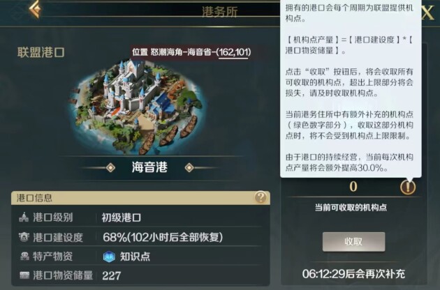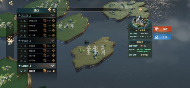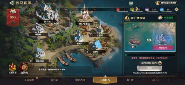 另外联盟需要经营自身港口,以此持续获得物资兑换机构点提升王权值;港口等级越高,港口为联盟提供的物资就越多,因此港口将会成为联盟对抗的爆发点。