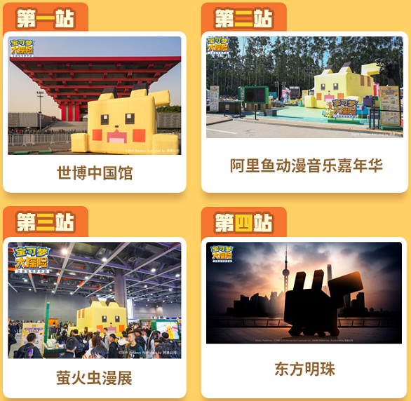 此外,《宝可梦大探险》在上海还设置了世博中国馆、阿里鱼动漫音乐嘉年华、萤火虫漫展和东方明珠四个站点,每个站点都有宝可梦人偶舞、游戏试玩等不同的“应援”活动,玩家可以根据官方给定的路线完成打卡,也可以自由决定打卡顺序哦!