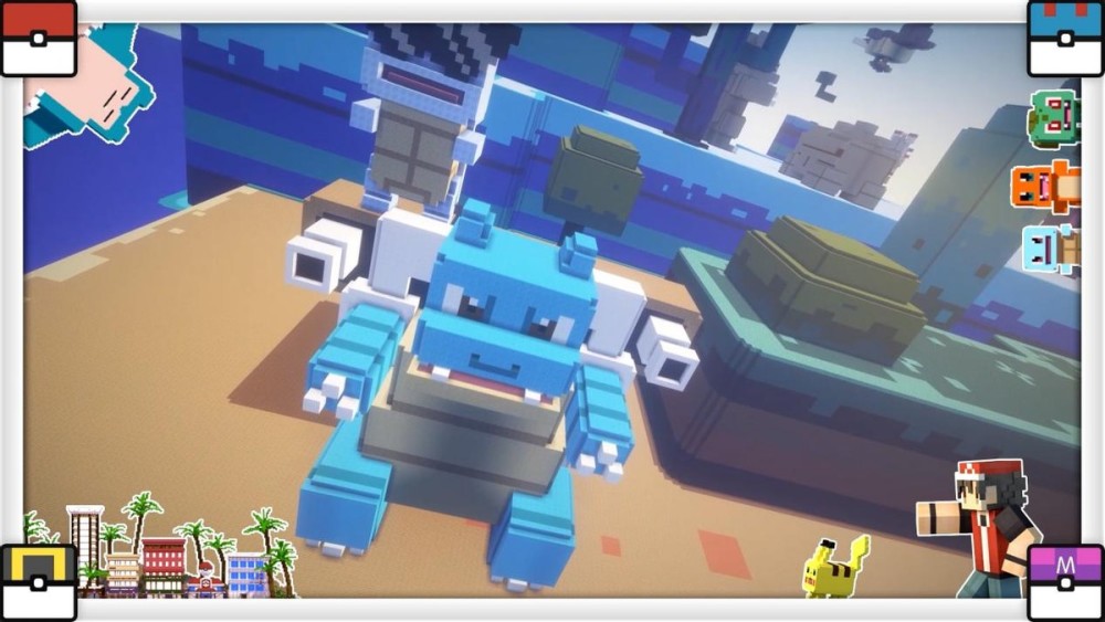先来说一说线上应援,有同时玩《宝可梦大探险》和《我的世界》(以下简称MC)的双坑玩家在游戏公测后,火速在MC还原了宝可梦天团。比较巧的是,《宝可梦大探险》中宝可梦的形象就是方方萌萌的,跟MC的初始模块“撞脸”,不仔细看,还真以为在MC里玩到了《宝可梦大探险》,怕是宝可梦自己来看,也是傻傻分不清。