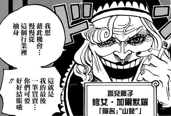 事实上,在人物塑造方面的创意,尾田是明显退步的。比如在蛋糕岛篇的回忆里,修女从善人到人贩子,中间没有任何铺垫,转折非常生硬;山治的父亲和三个兄弟,忽善忽恶,至今说不清他们算什么定位。