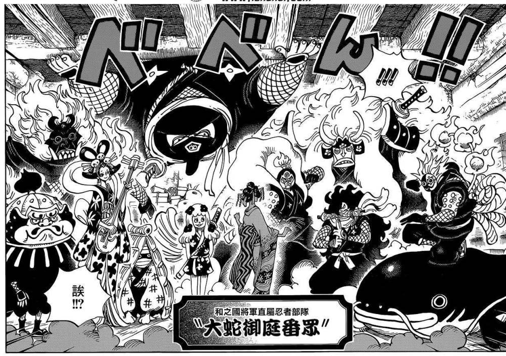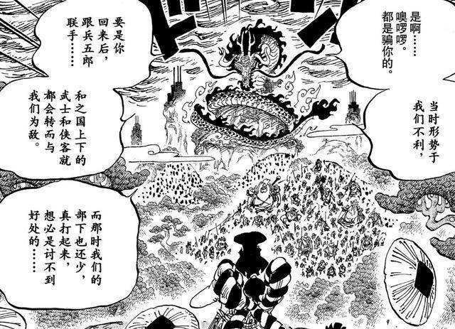 回国之后的故事,主要问题出在时间上,中间有五年的空隙,想不出来御田能干什么,所以才有了跳舞这个弱智情节。这里也应该省略,只用旁白提示,御田这五年在联系其他大名,准备讨伐凯多。其实真要解释这五年,是没什么难度的,只是尾田非要编个感人故事出来,结果又编不好。