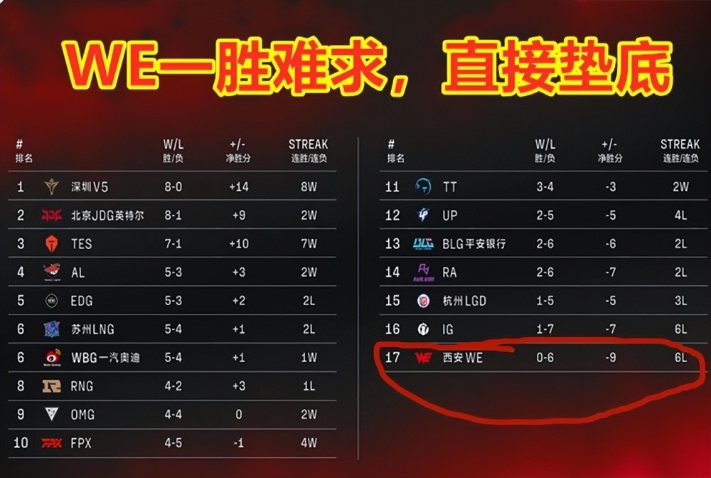 在这里,囧王者吐槽一下,WE不会效仿V5,搞个16连败吧?