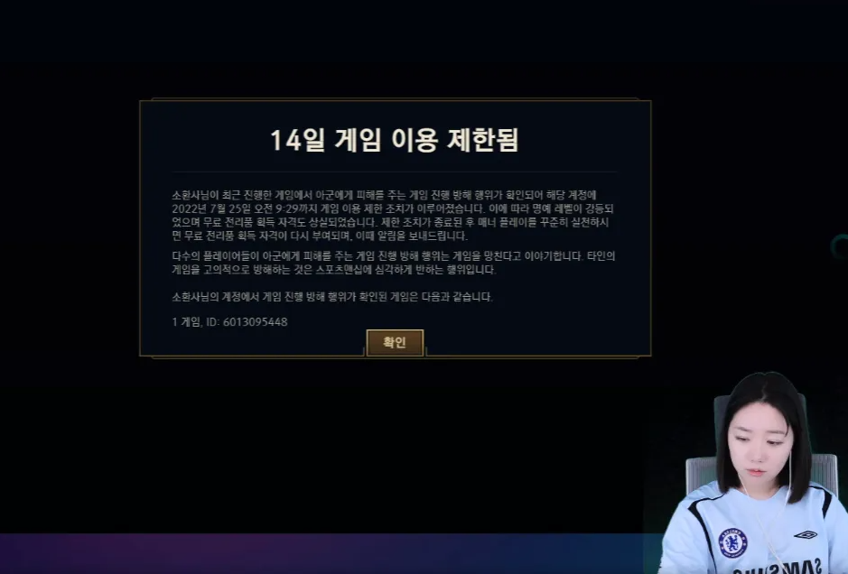 正常游戏三四十分钟就会结束,这场比赛却持续了216分钟,女主播战绩更是达到了3-121-6的数据。由于阵容中有两个对面的人,投降并不会成功,碍于主播的身份,下播或者退出游戏也会遭受到惩罚,只能被对面一直折磨三个小时,后来因为防御塔都不存在,通过小兵完成了推塔,否则被虐的时间还会更长。这样的比赛不用说女主播自己,就算是看的观众都觉得太惨了,加上比赛结束后被联合举报封号半个月,大家都觉得韩服有些人的心里已经开始扭曲。