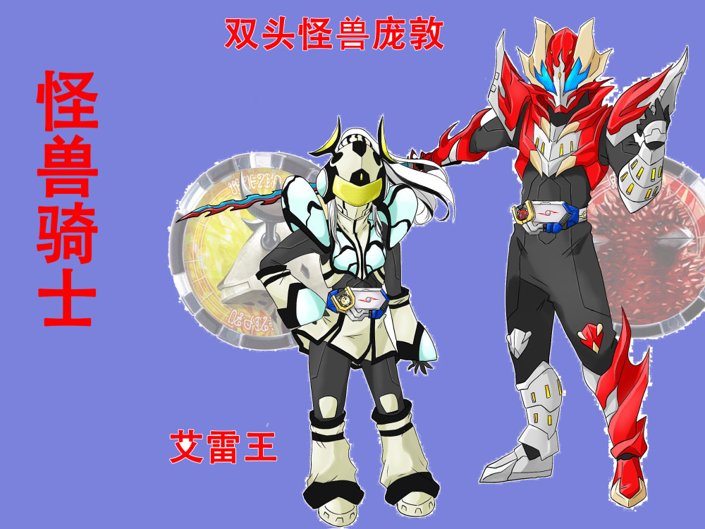 相比帅气的龙骑系列骑士,以双头怪兽庞敦和艾蕾王为主题设计的双子骑士也不错,使用泽塔驱动器搭配怪兽勋章进行变身,庞敦是帅气的红色骑士,左臂和右腿对应庞敦被改造的身体部分,所以是机械造型的。艾雷王的外形比较可爱,看起来很调皮,像穿着玩偶服的初中生。