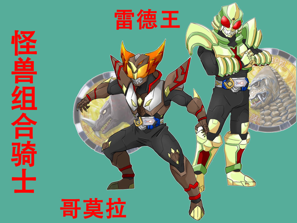 还有使用雷德王与哥莫拉怪兽勋章变身的组合骑士,设定与假面骑士利维斯差不多,平时是独立的两个骑士,打不过的时候就融合变身,这个设定源自通过贝利亚升华器可以将雷德王和哥莫拉的怪兽胶囊合成融合怪兽。