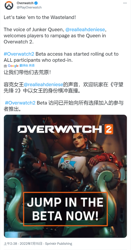 IT之家曾报道,《守望先锋 2》已于上个月开启第二次 Beta 测试,所有玩家均可试玩新英雄渣客女王和新地图。