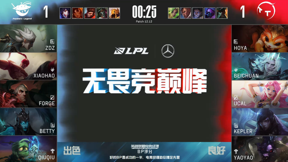 决胜局,AL蓝色方,禁用沙皇,烈娜塔,猴子,岩雀,阿狸,选用Zdz青钢影、Xiaohao盲僧、Forge乌鸦、Betty滑板鞋、QiuQiu阿木木;TT红色方,禁用泽丽,卢锡安,塞拉斯,武器大师,船长,选用HOYA纳尔、Beichuan破败之王、ucal萨勒芬妮、Kepler厄斐琉斯、yaoyao牛头。