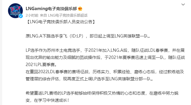 LNG则提上了二队的上单PandaC,还有二队的AD LP,很明显对阿乐和灯皇的表现也不满意。