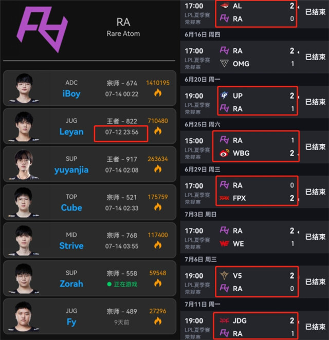 而且我们发现,乐言最近排位有点不上心。下一场比赛在十六号,对手BLG排名第十二,只比RA高一点。这场比赛势均力敌,RA应该好好准备。可其他选手排位到十四号凌晨,乐言却在十二号停止rank,他去做什么呢?