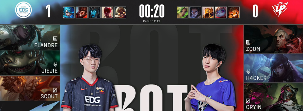EDG和UP教练组的第二次交锋,是填充完首轮的位置。在第一轮的交锋中,UP并没有拆开赛娜塔姆体系,等于拱手送给EDG这版本的T0下路。不拆对面,自己也不选,让人莫名其妙。