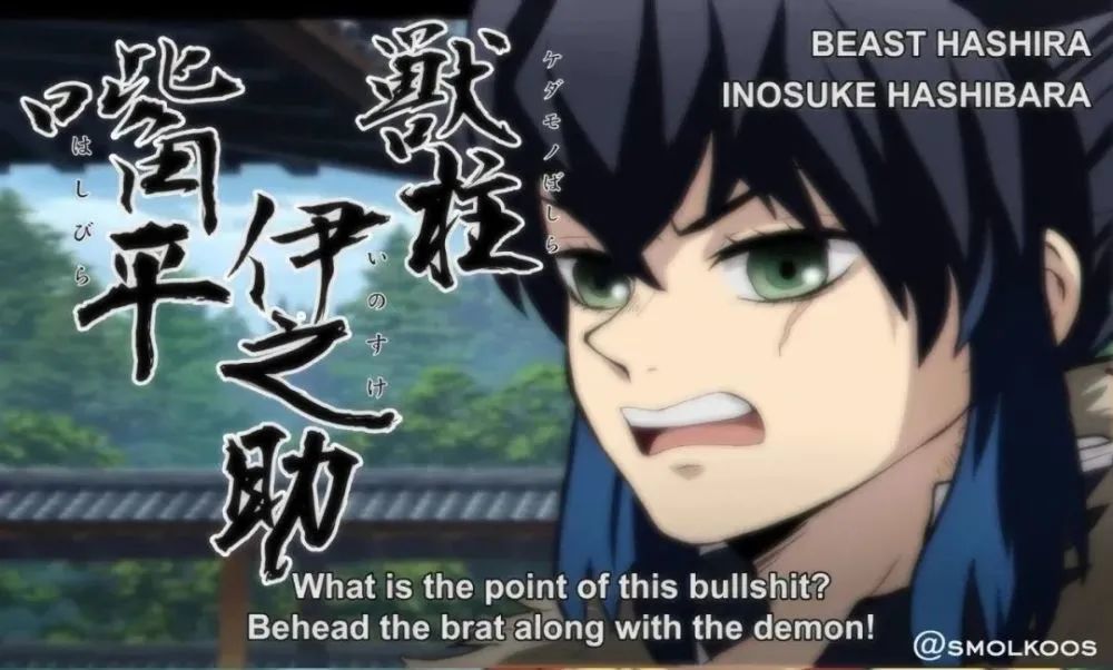图中的伊之助看着似乎没有什么变化,他的对白是:这是什么重点?重点是必须将这个鬼斩首!