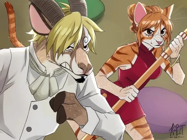 路飞旁边的则是索隆,这个索隆的动物形象则是白虎,不得不说白虎的形象和索隆也的确是蛮搭的,而且索隆一脸桀骜不驯的样子用老虎的脸表达出来的时候也是异常的和谐。白虎也可以看出索隆的强壮和彪悍,的确很符合索隆的形象。