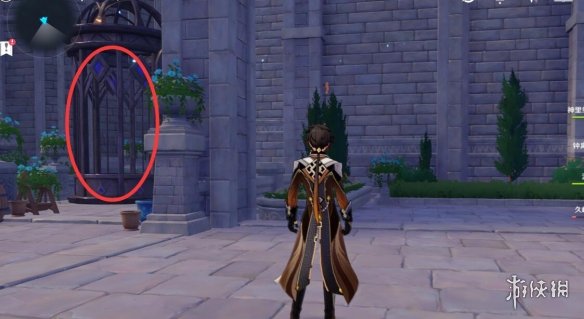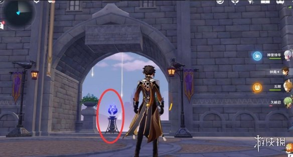 拼好之后我们沿着来时的路返回上层,沿着拼接好的道路继续往前走,在干掉门口的丘丘人之后,我们在复活点旁边发现了一个电梯。
