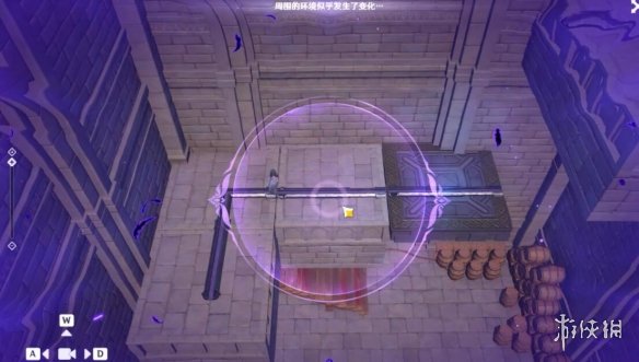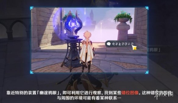 在经过一段剧情之后触摸夜鸦雕像我们进入了幽夜净土之中,进去之后我们会发现一个眼睛一样的装置,这个装置将在本次秘境探索中起到很大的作用。